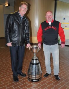 Gerry Organ is in Newfoundland being interviewed by Paul Harrington from Bell Media with regard to the feature on how, many years ago, Gerry influenced the choice of Jeff Hunt to go into football. Gerry was speaking to a group of high schoolers and Jeff was only 14 years old at the time.